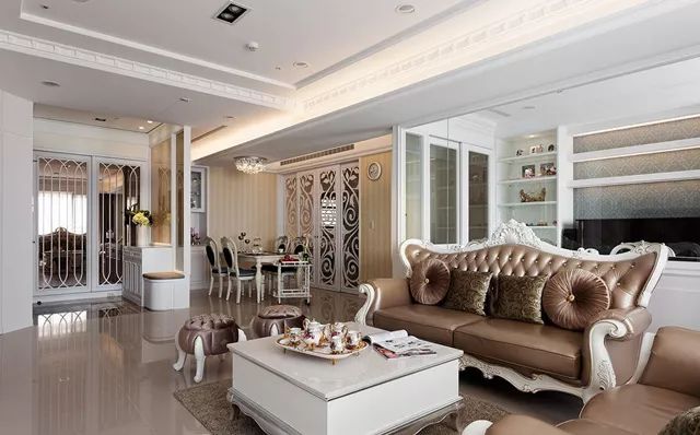 今天推薦的是208㎡舒適北歐風格裝修,從簡約出發,色彩以白色為主,加以皮質家具,給空間增加了溫度。同時局部背景以深藍色來點綴,融入空靈與浪漫的感覺。希望這套裝修案例能給準備裝修的大家帶來一些靈感。 客廳.