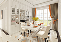 餐廳是每個家庭共同進餐的場所,裝修設計起來也是很有講究的,人生最暢快的,莫過于盡情酌飲幾杯寄情托志,暢懷于胸.網緣布紋為主色調,干凈而明亮;背景墻以灰藍色作為映襯,自然且清新,整體布局格外有情調,猶如步入西式餐廳給人帶.