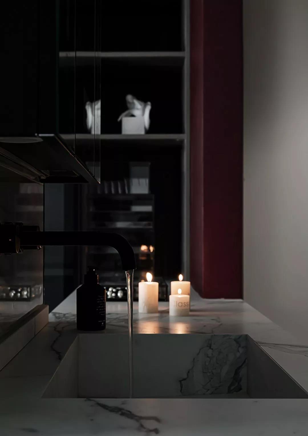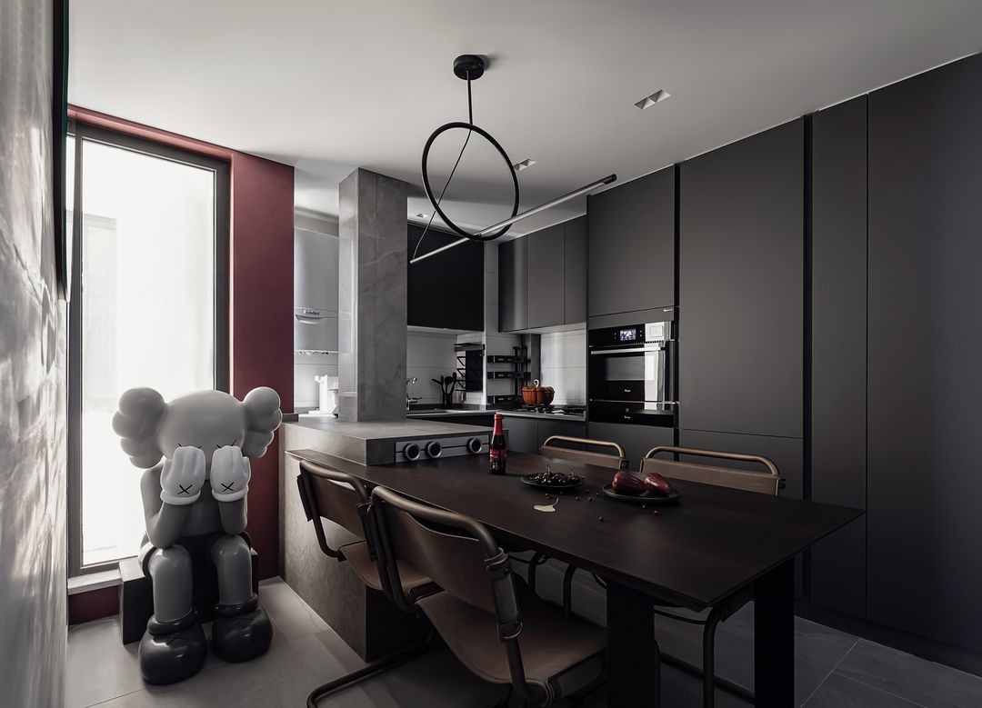 紅與黑是所有色彩搭配中最經(jīng)典的組合。紅的激情熱烈、黑的沉浸冷酷,在碰撞中闡述空間情節(jié),與周圍的白灰搭配,也有了個性與風(fēng)格。